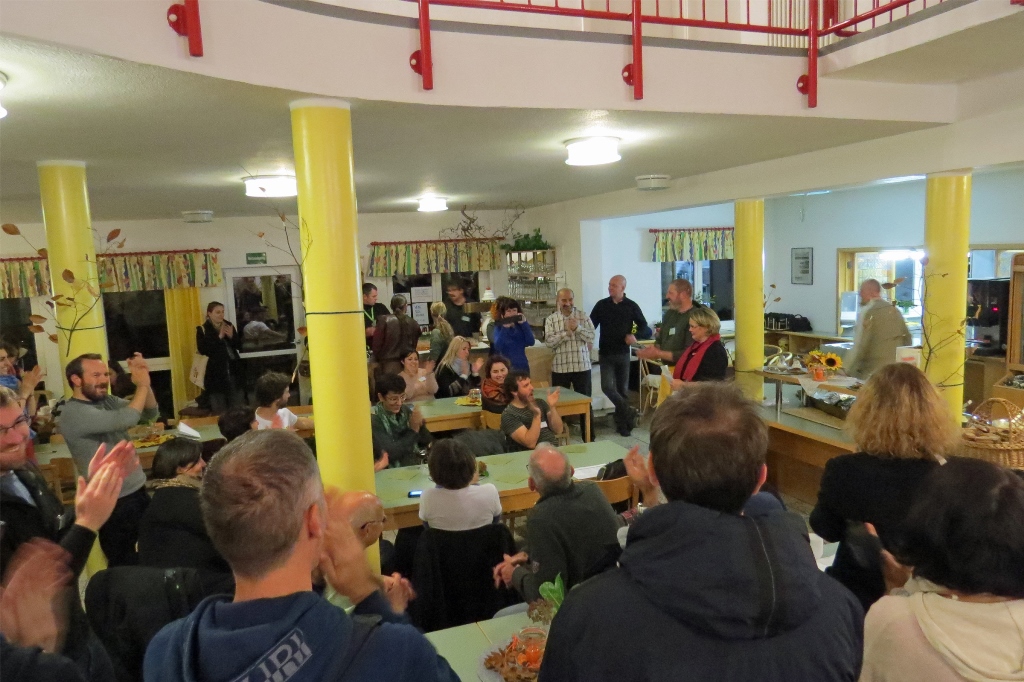Trotz des arbeitsintensiven Programms, gab es natürlich Abends Zeit, um auch gemeinsam zu feiern. So lud die Vereinigung junger Freiwilliger am 6. November alle Teilnehmer und regionale Partner ein, um gemeinsam bei gutem Essen und toller Musik das 25 jährige Bestehen des Vereins zu feiern. Für die tolle Musik sorgten die Musikanten des Ukranenlandes mit ihrer Gruppe Cantilena, die in der Jugendherberge aufspielten. Und so wurde schlussendlich den internationalen Gästen doch noch ein Stück regionaler Kultur geboten.