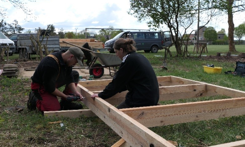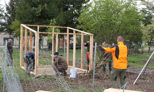 Die Gemeinde stellt am Sportplatz das Gelände zur Verfügung und es ist ihr gelungen Sponsoren für das Kita-Projekt zu begeistern. Der Naturpark hat sich um das Holz gekümmert, aus dem die die Ranger nun den Stall für die „Neuen“ errichten. Um das Gehege auch Wolfssicher einzuzäunen, war beim Zaunbau professionelle Unterstützung gefragt. Diese Unterstützung wurde uns Seitens der Landesforst gewährt. Um alle fleißigen Helfer auch bei Laune zu halten, kümmerte sich der Naturpark – Förderverein um die kulinarische Versorgung.