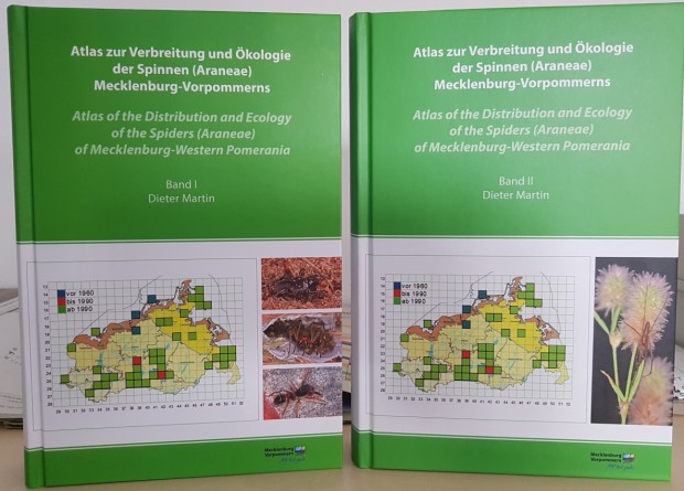 Die beiden Bände des „Atlas zur Verbreitung und Ökologie der Spinnen (Araneae) Mecklenburg-Vorpommerns“ von Dieter Martin (ISBN 978-3-948995-00-3 und ISBN 978-3-948995-02-7) sind ab sofort im Buchhandel, beim NABU Regionalverband Parchim e. V., den Besucherinformationszentren der Naturparke des Landes oder auch online unter edition-lesezeichen.de erhältlich.