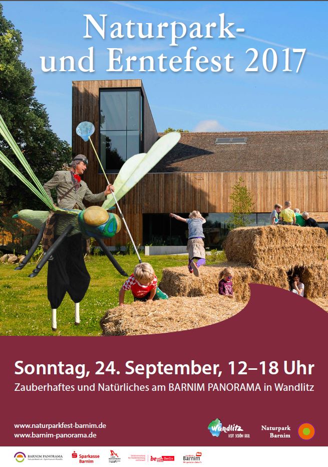 Nach langer Reise durch den Naturpark Barnim kehrt das beliebte Naturparkfest in den heimatlichen Hafen zurück und gastiert auf dem Gelände des neuen Besucherzentrums BARNIM PANORAMA in Wandlitz. Dort fand seit 2014 traditionell das Erntefest zum Tag der Regionen statt. Beim diesjährigen gemeinsamen Naturpark- & Erntefest wird mit einem wechselnden Programm aus Livemusik, Artistik, Tanz und Theater-Performance die Schönheit und Funktionalität der Außenbereiche und die besondere Architektur des Ausstellungsensembles für die Besucher erlebbar gemacht. Im Schaugarten, im Entdeckerpfad und auf der Festwiese wird ein abwechslungsreiches Programm für Groß und Klein geboten. Von Nutzpflanzenraritäten, traditionellem Handwerk bis hin zu Produkten aus der Region gibt es Allerlei zu erleben und zu probieren. Neben einer Pilzausstellung stehen Obstraritäten und in Vergessenheit geratene Ölfrüchte im besonderen Fokus. Beim Kartoffelwettbewerb kann jeder mitmachen. Gesucht wird die lustigste geformte oder gestaltete Kartoffel. Ein attraktiver Regionalmarkt bereichert an diesem Tag das Fest mit vielen Ständen und Angeboten, darunter landwirtschaftliche Produkte und Kunsthandwerk aus der Region. Zum Thema Wald bieten die Berliner und Brandenburger Forsten und der Jagdverband Bernau vielfältige Aktivitäten, wie Grünholzdrechseln, Bogenbau und Bogenschießen und Nistkastenbau. Der Naturpark Barnim, die Naturwacht und der NABU stellen Projekte ihrer Arbeit vor. Die Dauerausstellung und die Sonderausstellung im Haus sind an diesem Tag für alle Besucher geöffnet. Selbstverständlich gibt es spannende Angebote für Kinder: es kann geritten, geklettert, gebastelt, experimentiert und getobt werden – natürlich richtig zünftig – wie es sich im Freien gehört!