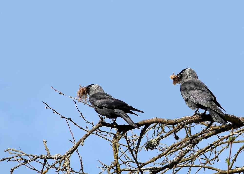 Auf blattlosem Ast Sitzt allein eine Krähe; Herbstlicher Abend.