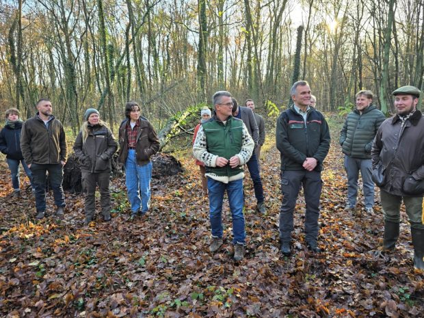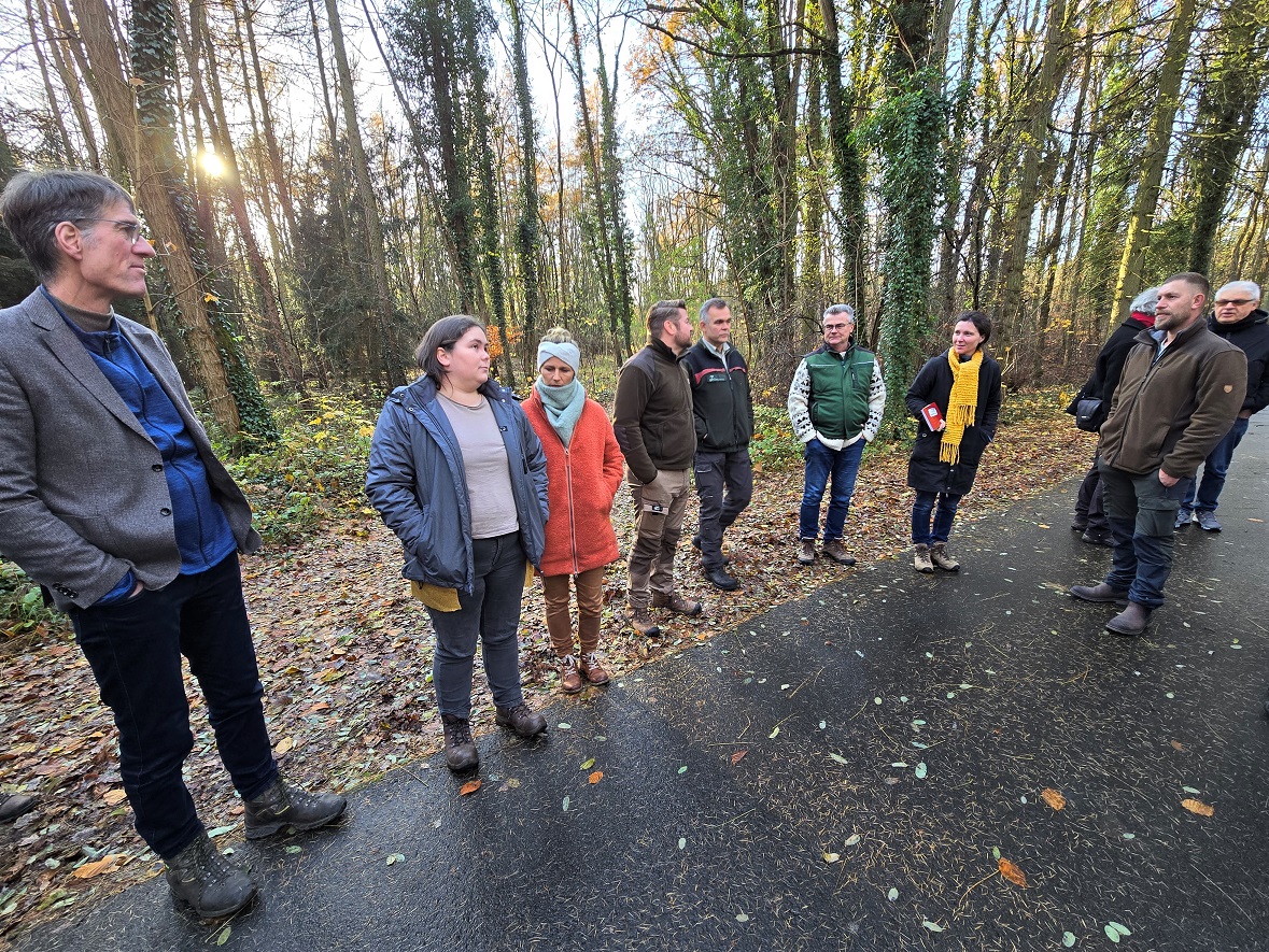 Dr. Frank Zimmermann vom Landesamt für Umwelt erläuterte neben den naturschutzfachlichen Aspekten auch die rechtlichen Aspekte, die zu berücksichtigen sind. Der neue „Erlass zu Maßnahmen in Halboffen- und Offenlebensräumen im Wald“ des Umweltministeriums vom 20.11.2024, den Dr. Zimmermann vorstellte, zeigt einen guten Rahmen für die moderne Waldweide auf.
