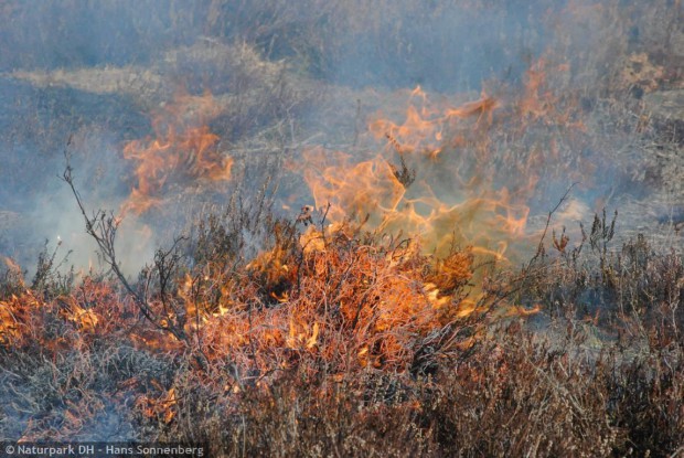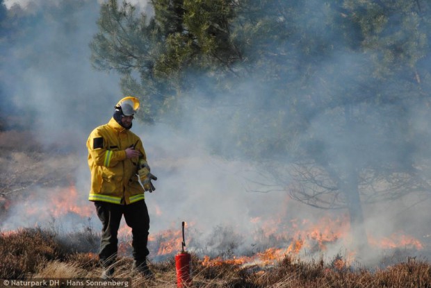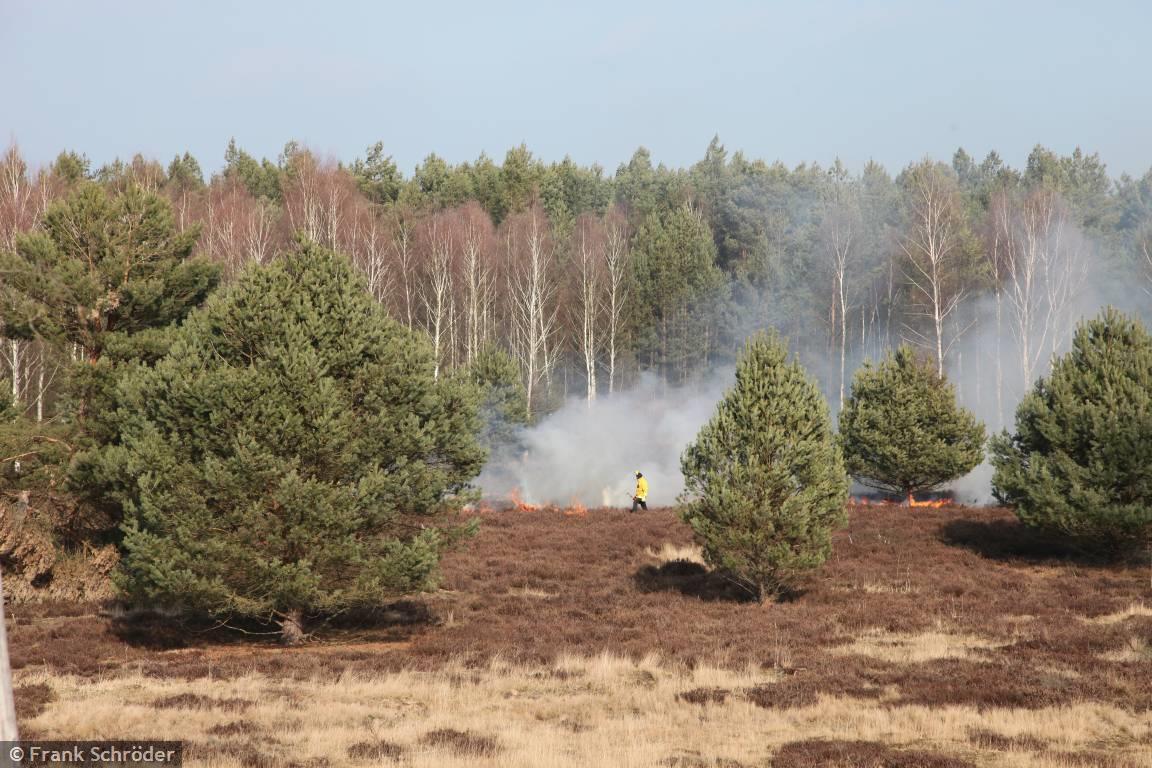 Zur Erhaltung überalteterer Heideflächen wurden in Massow Flächen abgeflämmt.Eines der größten Heidegebiete im Dahmeland befindet sich auf dem früheren militärische Übungsplatz Massow bei Freidorf. Die Heide wird hier regelmäßig mit Schafen beweidet. Trotz des Verbisses ist die Heide hier in weiten Bereichen „überaltert“ und droht abzusterben. Duch einem kontroliertem Feuereinsatz wurden nun Teilbereiche abgeflämmt. Junge Heide kann sich nun im Frühjahr auf der Brandfläche entwickeln.