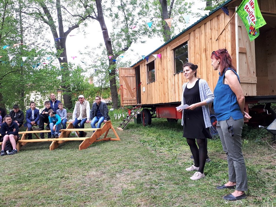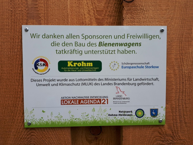Aus alt mach’ neu: Nach diesem Motto funktionierten Schüler:innen der Europaschule in Storkow einen alten Bauwagen zum Bienenwagen um. Nah der Burg Storkow entstand in letzter Zeit ein wahrer Insektenparadies-Garten. Der umgestaltete Bauwagen dient jetzt als grünes Klassenzimmer. Er beherbergt auch einige Bienenkästen im Heck, die mit Unterstützung von Holger Ackermann betreut werden.