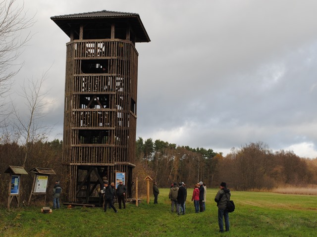 EineWanderung führte durch die beschauliche Naturlandschaft mit Sielmanns Natur-Ranger Andreas Batke, der die Tiere und Pflanzen entlang des Lehrpfades vorstellte. Die ca. 3 km lange Rundwanderung führte vom Gelände der Fischerei Köllnitz in Groß Schauen parallel zum Ufer des Groß Schauener Sees bis zum großen hölzernen Aussichtsturm „Selchow“ am Großen Wochowsee.