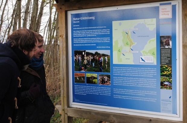 Am 20. November wurde in Sielmanns Naturlandschaft Groß Schauener Seen ein neuer Naturlehrpfad eingeweiht. Zehn neue Schautafeln am Wegesrand beschreiben die typischen Lebensräume der Seenlandschaft, z.B. Erlenbrüche und Röhrichte sowie die hier beheimateten Arten wie Fischotter, Moorfrosch und Blaukehlchen.