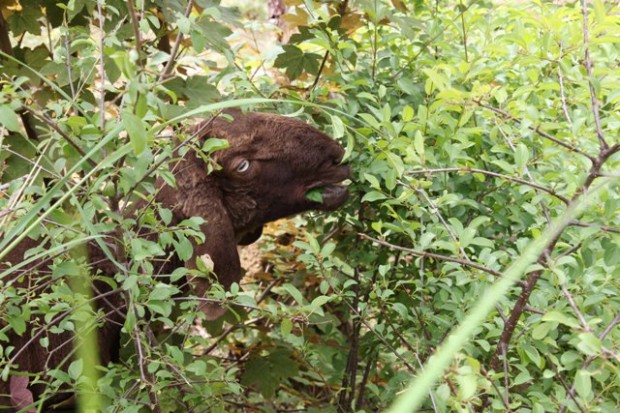 Bergschaf verbeißt am Glienitzberg bei Bugk einen Kreuzdornbusch (Foto: Naturschutzfonds Brandenburg – H. Rößling)