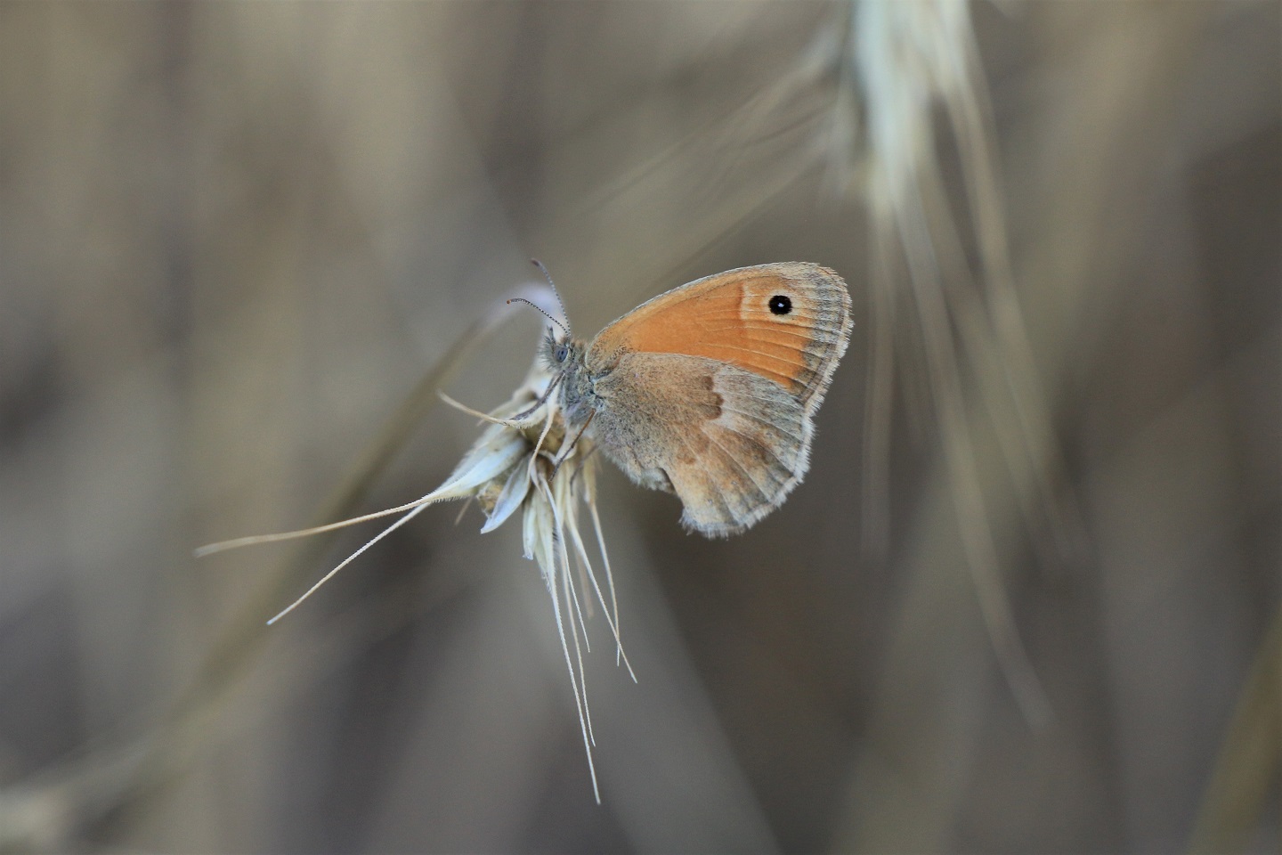 Kleines Wiesenvögelchen (Coenonympha pamphilus) am Ackerrand (© Carsten Preuß)