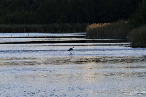 Der bis zu einem Meter große Graureiher zeigt sich meist in der Nähe von Gewässern. Auf dem Foto ist er an der Groß Schauener Seenkette zu sehen. Sie umfasst insgesamt sechs Flachwasser-Seen in der Gemeinde Storkow und ist als europäisches Vogelschutzgebiet und als FFH-Gebiet gesichert. Der Uferbereich vom Naturgut Köllnitz bei Groß Schauen gibt den Blick frei um Graureiher und andere Wasservögel zu beobachten.