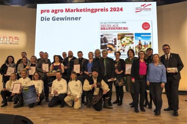 Am 19. Januar zeichneten Landwirtschaftsminister Axel Vogel und pro agro Geschäftsführer Kai Rückewold die Gewinner des pro agro-Marketingpreises 2024 in den drei Kategorien Direktvermarktung, Ernährungswirtschaft, Land- und Naturtourismus aus. Aus insgesamt 60 Bewerbungen hat eine Fachjury 3 Gewinner pro Kategorie bestimmt.