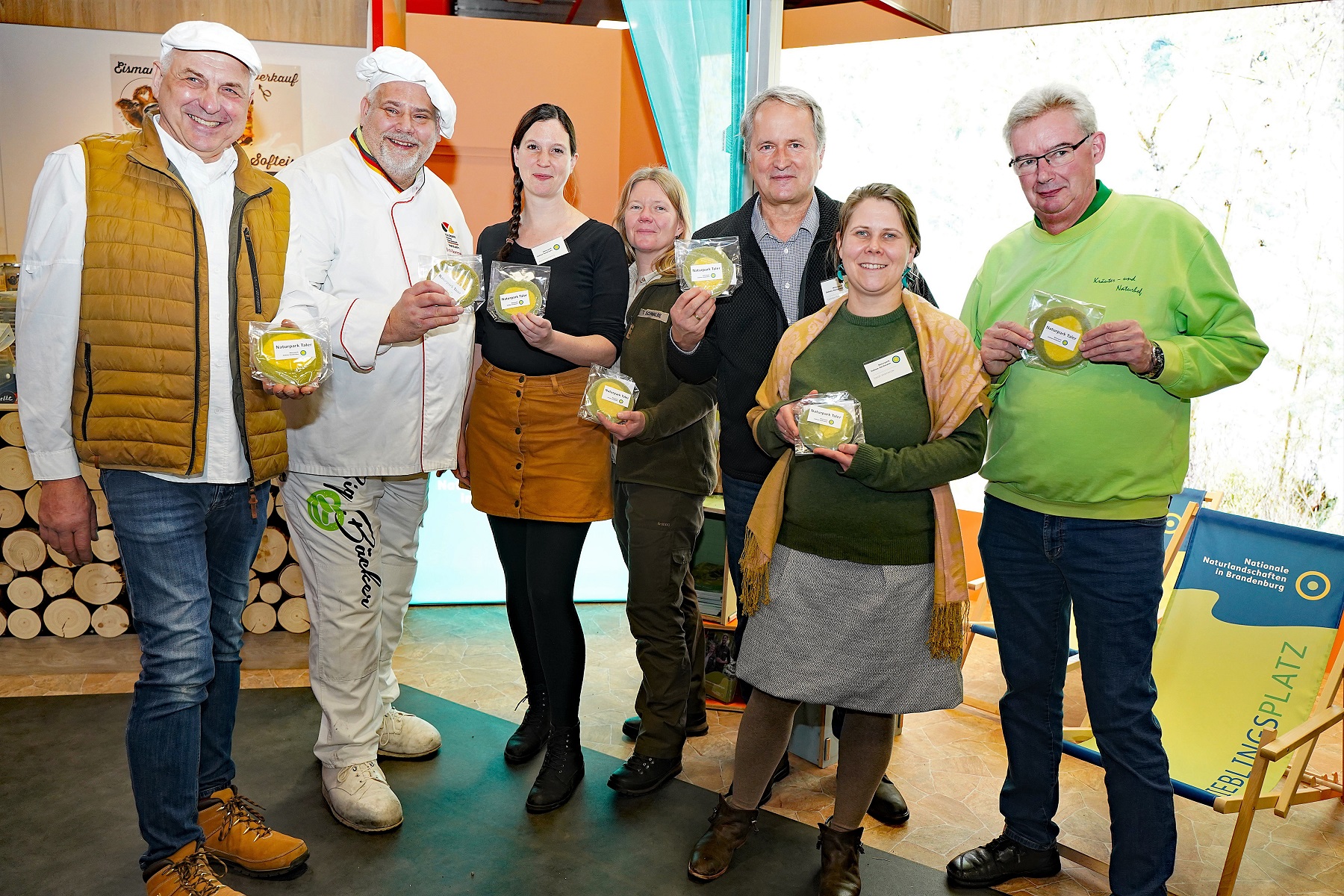 Holger Ackermann (Landesimker), Holger Schüren (Zum Brotsommelier Gräbendorf), Astrid Osenbrück (Naturpark Dahme-Heideseen), Theresa Schwalbe (Naturwacht Dahme-Heideseen), Carsten Preuß (Naturpark Dahme-Heideseen), Sarah Mamerow (Naturpark Dahme-Heideseen) und Gerald Bernhardt (Kräuter- und Naturhof Kolberg) (v.l.n.r. © Frank Kirchner)