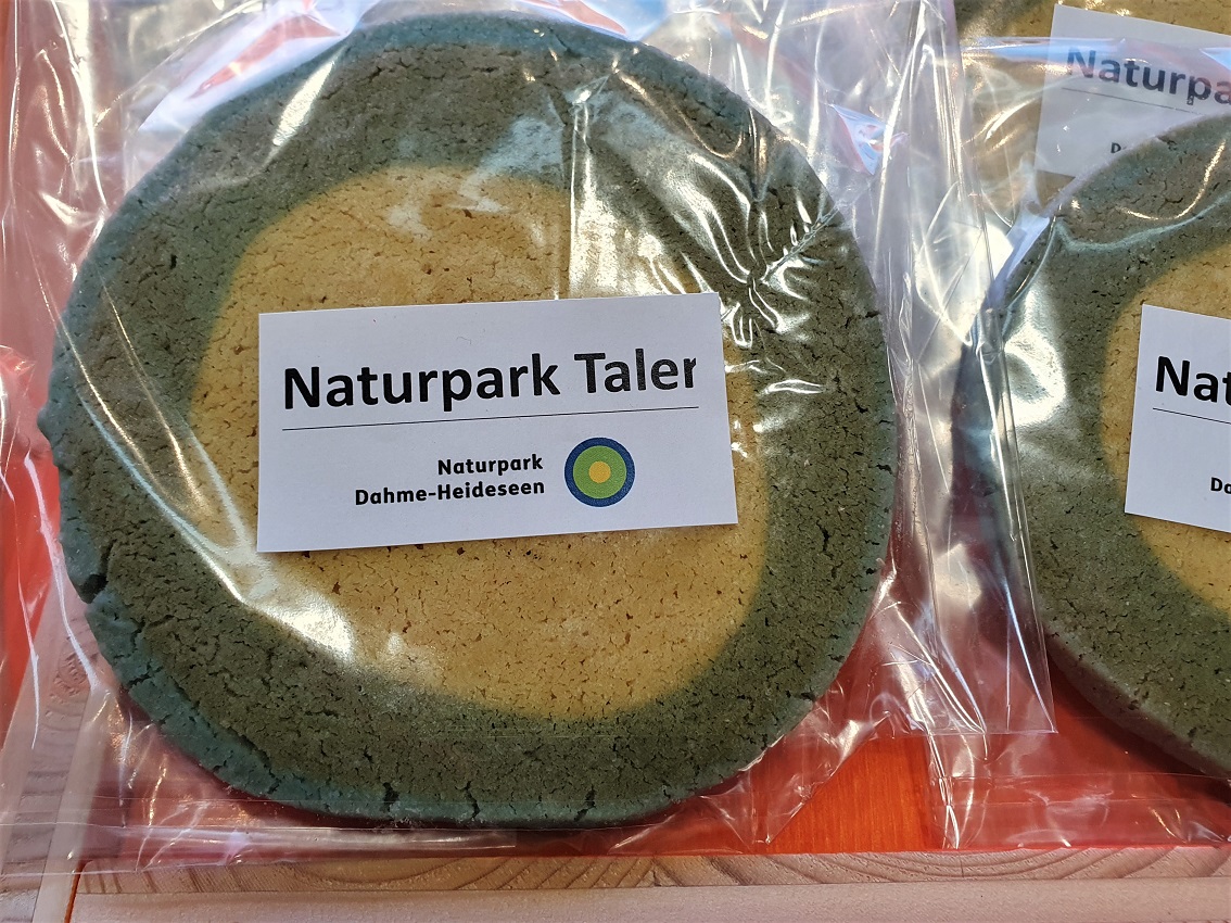 Der Naturpark Dahme-Heideseen präsentierte sich auf der Grünen Woche in Berlin, am Stand der Nationalen Naturlandschaften in der Brandenburghalle. Für die Besucher gab es NaturparkTaler vom Brotsommelier aus Gräbendorf. Die süßen Sandtaler aus Mürbeteig zeigen das Naturparklogo. Eingefärbt sind sie mit Kurkuma und Algen. Im Kochstudio mit dem Moderator Detlef Olle konnten Bäckermeister Holger Schüren und Naturparkleiter Carsten Preuß den NaturparkTaler den Besuchern vorstellen.