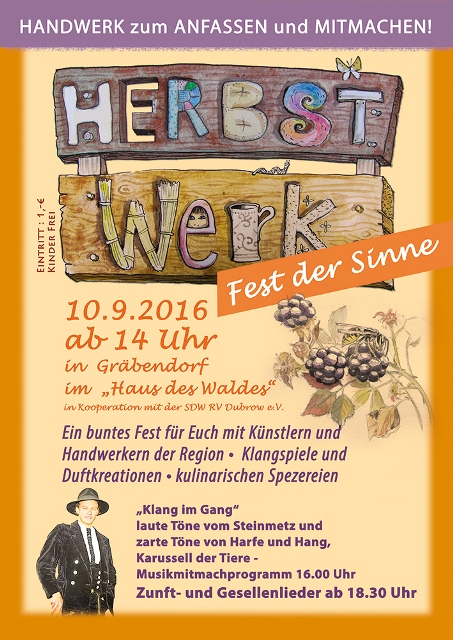 Fest der Sinne – Handwerk zum Anfassen und Mitmachen am 10. September 2016 ab 14:00 Uhr