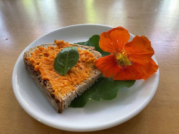 Als attraktiven Zusatz können Wildkräuter verwendet werden, die sich auch jetzt noch auf der nächsten Wiese finden lassen – oder sogar im eigenen Garten. Wildkräuter wachsen auch noch im Herbst. Bei großer Verfügbarkeit kann man bedenkenlos ein paar Stängel ernten. Hilfe bei der Bestimmung kann eine Pflanzenbestimmungs-App auf dem Handy, wie Flora Incognita, leisten.
