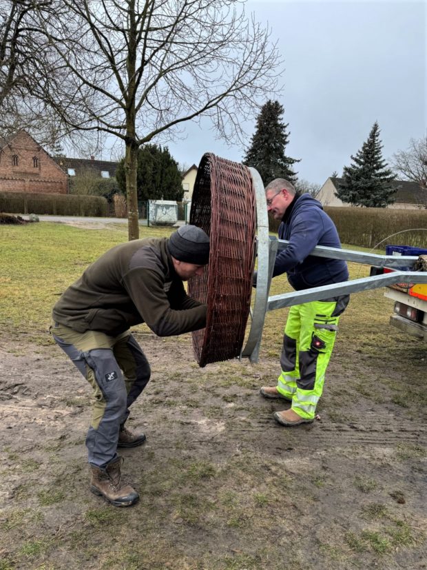 Ermöglicht wurde das Vorhaben durch die Unterstützung der E.DIS AG. Ausgeführt hat die Arbeiten die Fa. Wilhelm Meyer aus Müncheberg. Die Naturwacht finanzierte den Korb und das Befestigungsmaterial und die Naturparkverwaltung das Rad auf dem der Korb mit dem Nest befestigt ist. Die Organisation übernahmen die Naturwacht, die Stadt Storkow/M. und der Ortsvorsteher aus Bugk, Matthias Bradtke. Vielen Dank an alle Beteiligten.