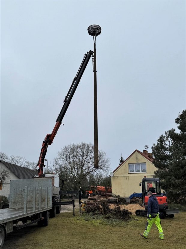 Für Meister Adebar steht alles bereit: In Bugk bei Storkow/Mark wurde jetzt ein neuer Storchenhorst aufgestellt.