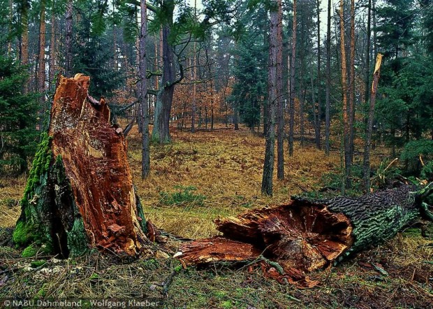 Das Jahr 2014 neigt sich dem Ende zu. Ein sicheres Zeichen ist die Ausrufung der Natur des Jahres 2015. Vor kurzem wurde der Habicht als Vogel des Jahres 2015 fest gelegt. Bevor nun bald der Baum des Jahres 2015 folgt, wollen wir in unsere kleinen Jahresreiche noch einmal an den Baumvertreter des Jahres 2014 – die Trauben-Eiche erinnern. Neben der Stiel-Eiche ist sie die zweite heimische Eiche. Unterschieden lassen sich Trauben- und Stieleiche an der Blattform und den Stielen der Fruchthüllen. Die Trauben-Eiche hat als Baum, einen fast immer „durchgehenden“ Stamm. Natürliche Vorkommen von Trauben-Eichen gibt es vor allem in den etwas nährstoffreicheren Gebieten der End- und Grundmoränen. Die schönsten Trauben-Eichenbestände gibt es in der Dubrow sowie in den Radebergen und Katzenbergen. Es lohnt sich, diese Gebiete mit einem Spaziergang einmal zu erleben. Bitte bleiben Sie hier auf den Wegen, sie wandern in Naturschutzgebieten. Auch vom Wegesrand aus können Sie wunderbare Naturphänomene beobachten. Hierzu gehören auch bereits gestürzte „Urwaldriesen“.