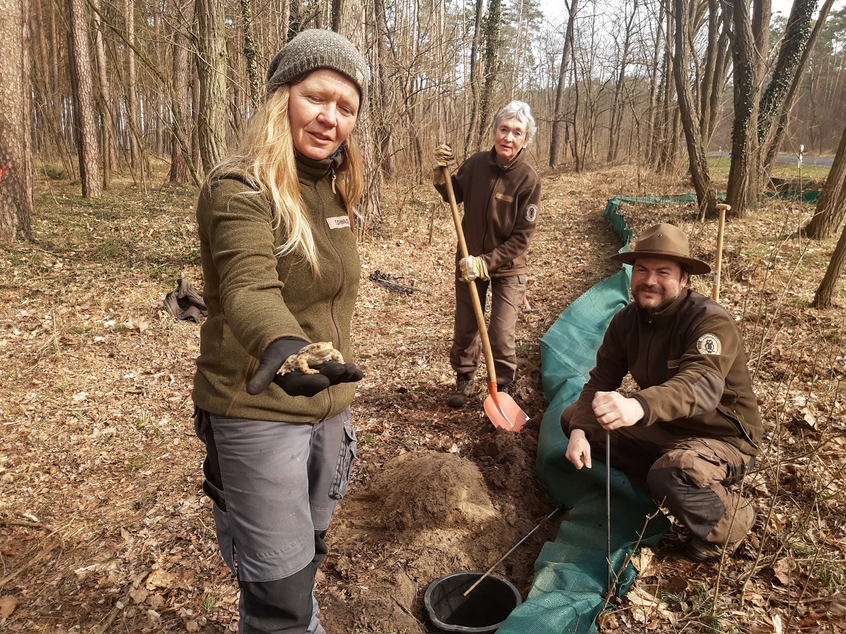 Ranger retten Kröte, Gras- und Moorfrosch im Naturpark Dahme-Heideseen
