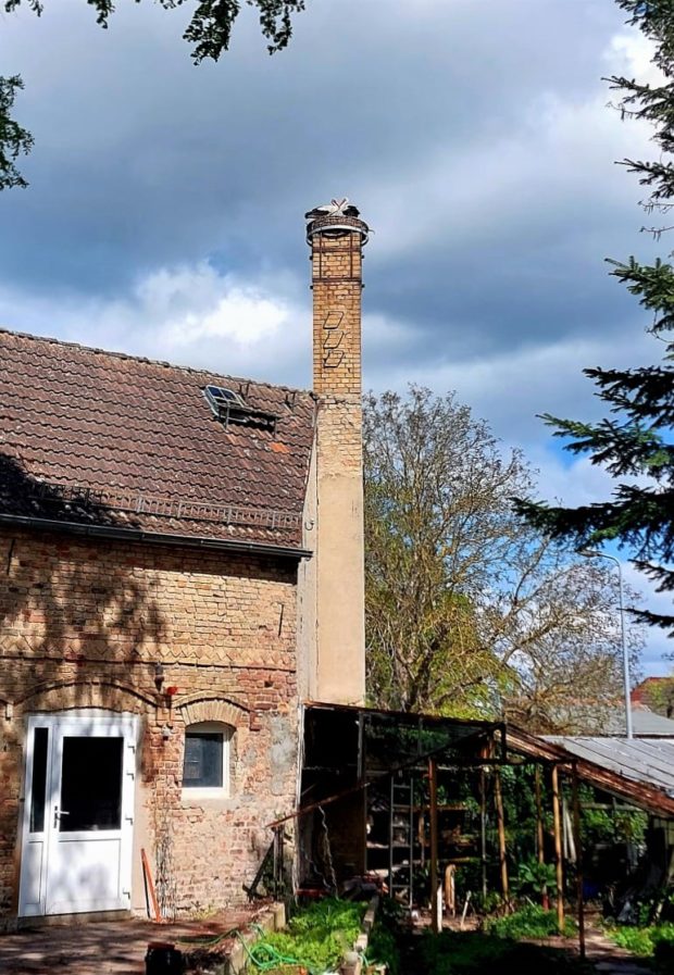 Dabei wurde im März 2023 eine neue Nisthilfe auf dem Schornstein angebracht. Die Stabilität des alten Nestes war nicht mehr gegeben. Zudem wurden die Trittbügel am Schornstein entfernt, damit auch Waschbär und Co. keine Chance haben den Storchenhorst auszurauben. Jetzt ist die Freude umso größer, dass sich ein Storchenpaar eingefunden hat und das Nest herrichtet.