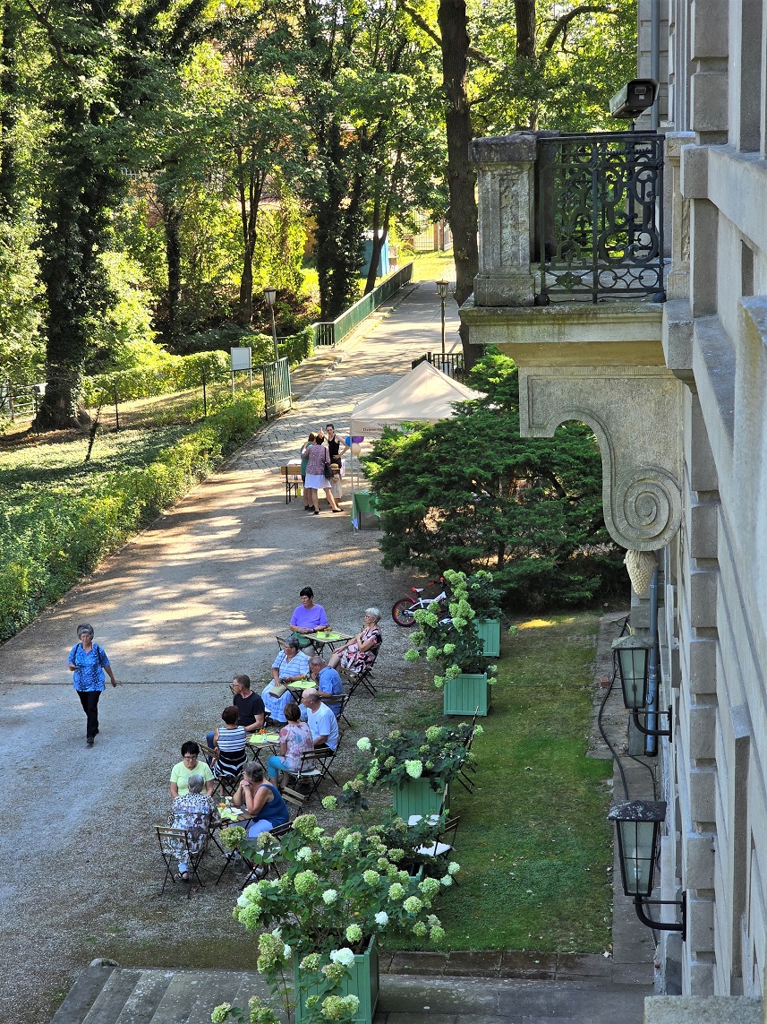Vor dem Schloss veranstalteten die Vereine des Ortes einen gut besuchten Kuchenbasar dessen Einnahmen sich sehen lassen können und dem Ort zugutekommen werden. Wer nicht ins Schloss konnte hatte neben Kaffee und Kuchen auch die Möglichkeit einen kleinen Spaziergang um das Gelände oder zum Spreeufer zu bestreiten oder der Dorfkirche einen Besuch abzustatten. Dabei traf man auch fast unweigerlich auf den 7-Brücken-Weg, einen landschaftlich wunderschönen Wanderweg, der die Umgebung des Ortes erkundet und in Szene zu setzen weiß.