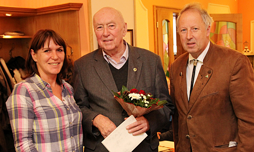 25 Jahre Verein Dübener Heide – das haben die Mitglieder aus Bad Düben, Bad Schmiedeberg, Bergwitz, Gräfenhainichen, Möhlau, Rösa, Söllichau, Schwemsal und Schlaitz sowie aus anderen Orten am 30. Oktober im Naturparkhaus in Bad Düben gefeiert. Unter dem Motto „Wir bewegen was“ sind besonders eifrige Wanderer ausgezeichnet worden. Das Deutsche Wanderabzeichen in Gold, die höchste Auszeichnung, erhielten Achim Brinkel, Lutz Harnack, Emil Gaber und Walter Wototschek aus Bad Düben. Sie haben allesamt fünfmal in Folge mindestens 200 Kilometer zurückgelegt – auf Freizeitwanderungen, die sie regelmäßig absolvieren, unter anderem als Teilnehmer bei den Deutschen Wandertagen oder wie Walter Wototschek mit Kurgästen in Bad Schmiedeberg. Weitere Heidefreunde des Vereins erhielten auf der Mitgliederversammlung am 21. November im Hotel National Ehrennadeln. Herbert Meyer (Foto, Mitte), der Ehrenvorsitzende des Vereins Dübener Heide, ist vom Deutschen Wanderverband mit der Goldenen Ehrennadel ausgezeichnet worden. In seiner Laudatio ging Michael Ermrich, Schatzmeister beim Wanderverband, auf die Verdienste von Herbert Meyer ein, der im November 80 Jahre alt wurde. Meyer war in der Wendezeit Mitglied der Grünen Tische, aus denen sich 1990 der Verein Dübener Heide wiedergründete, und dann erster Geschäftsführer. Zu seinen Verdiensten zählen, dass die Heide bereits 1992 den Status Naturpark erhielt und 1999 den Deutschen Wandertag ausrichtete. „Ich bin erfreut“, sagte Herbert Meyer. „Das alles ist aber nicht das Werk eines Mannes, sondern dieses Vereins, zu dem wir alle gehören.“