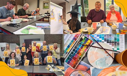 „An die Pinsel, fertig, los!“ hallt es monatlich durch das NaturparkHaus und inspiriert Hobbykünstlerinnen und -künstler aus Bad Düben und Umgebung dazu, ihre Talente in der Aquarelltechnik zu entfalten.