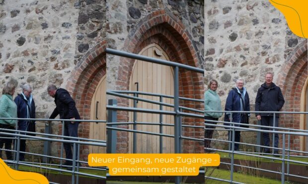 Ein besonders sichtbares Beispiel ihres Engagements ist der Umbau der Bad Schmiedeberger Kirche. Zwischen 2017 und 2020 wurde ein zuvor verschlossener Seiteneingang an der Südseite geöffnet und mit einer barrierefreien Rampe ausgestattet. Die Maßnahme wurde mit ELER-Fördermitteln finanziert und vom Regionalmanagement Dübener Heide beratend begleitet. Das Ergebnis kommt nicht nur der Gemeinde, sondern auch der Kurstadt zugute. „Viele Kurgäste stehen an Wendepunkten ihres Lebens“, erklärt Pfarrer Gramzow. „Hier einen offenen, zugänglichen Ort anbieten zu können – insbesondere für Menschen mit eingeschränkter Mobilität – empfinde ich als besonders wertvoll.“