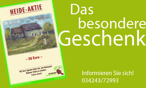 Endspurt für die Heide-Aktien: Noch einen Monat lang sind die beliebten Papiere mit dem 2013er-Motiv von der imposanten Elbschifferkirche in Priesitz, die Heidemaler Wolfgang Köppe in Öl malte, zu haben. Vielleicht hat der eine oder andere noch kein passendes Weihnachtsgeschenk – mit einer Heide-Aktie kann er bei seinen Lieben auf individuelle und zugleich originelle Weise punkten. Denn wer eine Heide-Aktie verschenkt, macht den Beschenkten automatisch zum Aktionär und damit zum Unterstützer der Dübener Heide – und das ohne zusätzliche Verpflichtungen. Und so funktioniert das: Eine Heide-Aktie im Wert von 50, 150 oder 250 Euro erwerben und den Namen des Beschenkten mitteilen. Die Aktie wird dann für denjenigen persönlich angefertigt und dem Schenker zugestellt. Das Geld wird wiederum für Artenschutzprojekte verwendet, um die biologische Vielfalt in der Naturparkregion zu fördern sowie die Heimatpflege und Jugendarbeit, hier insbesondere die Junior-Ranger-Gruppen. Der Verein Dübener Heide e.V. lässt die Menschen und Heidefreunde seit 2008 teilhaben an der Entwicklung des Naturparks, indem er sie zu Heide-Aktionären macht. Knapp 200 Aktien sind seit dieser Zeit herausgegeben worden. Die Papiere haben einen rein ideellen Wert. Wer Aktionär ist, engagiert sich für die Naturparkregion. Weil die Aktien-Papiere jedes Jahr ein neues Motiv haben, erreichen sie im Verlauf der Jahre auch einen Sammlerwert.