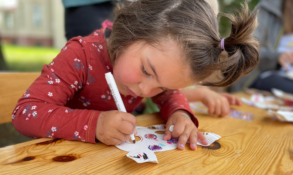 Zusammen mit den Kindern bastelten wir Tiermasken auf dem Sommerfest (C) Naturpark Dübener Heide, Claudia Evers