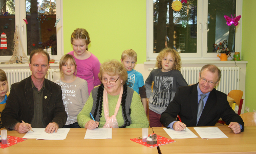 Anfang Dezember unterzeichneten Axel Mitzka, Vorsitzender des Vereins Dübener Heide, und Roland Märtz zusammen mit Schulleiterin Ingetraut Reiche eine Kooperationsvereinbarung für die Dauer von zunächst fünf Jahren. Geplant ist, dass die Schule im Unterricht künftig stärker auf Natur- und Umweltthemen setzt. Unter anderem soll der regionale Bezug zum Naturpark Dübener Heide, zur Region und ihrer Geschichte und Kultur sowie alle regionalen Besonderheiten als Basis für Lerninhalte genutzt werden. Dazu gehört, dass Lern- und Erfahrungsorte auch außerhalb der Schule einbezogen werden. Jede Klasse soll mindestens einmal im Schuljahr das Thema Naturpark im Unterricht und darüber hinaus behandeln. Dabei werden an geeigneten Stellen Sequenzen über die Arbeit und die Bedeutung des Naturparks, regional typische Lebensräume und die dort vorkommenden Pflanzen-und Tierarten sowie heimatkulturelle Aspekte integriert. Der Verein Dübener Heide stellt dafür im Rahmen seiner Möglichkeiten Texte, Bildmaterial, Lernmaterialien und Unterrichtsbeispiele zur Verfügung und unterstützt bei Exkursionen und Projekttagen. Des Weiteren werden außerschulische Partner wie Förster, Naturschützer und Landwirte einbezogen. Die Schülerinnen und Schüler lernen auf diese Weise ihre Heimatregionen kennen und werden für das Einzigartige der Heide begeistert. Der Verein hat bereits Erfahrungen in der Zusammenarbeit mit Patenschulen und dem Patenkindergarten in Bad Schmiedeberg gesammelt.