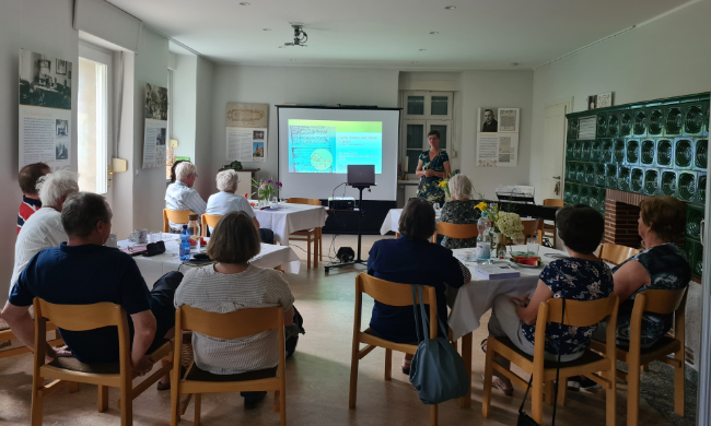 Bei Kaffee und Kuchen plaudern Ortschronist:innen und Heimatforscher:innen aus dem Nähkästchen, geben Einblicke in Inhalte und Methoden ihrer Arbeit und stellen den Umgang mit dem Buchscanner zur Digitalisierung von historischen Dokumenten vor. Im Anschluss führt Pfarrerin Lampadius-Gaube durch die aktuelle Ausstellung „Leben und Wirken nach Luther“ im CONFUGIUM, die Einblicke in die Kulturgeschichte des Pfarrhauses und das Wirken der Pfarrfamilien in Kirche und Pfarrhaus gewährt. Zusätzlich kann der derzeit im Bau befindliche Backofen im Nebengebäude besichtigt werden. Die circa dreistündige Veranstaltung bietet genügend Zeit für den gemeinsamen Austausch.