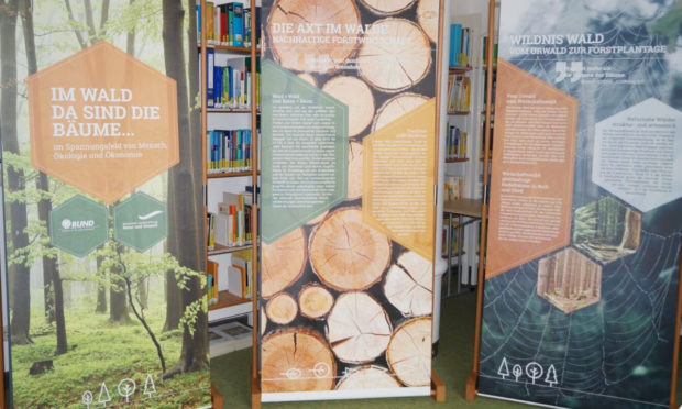Drei Informationstafeln mit waldtypischen Motiven sind u.a. Bestandteil der Ausstellung (C) Sächsiche Landesstiftung Natur und Umwelt