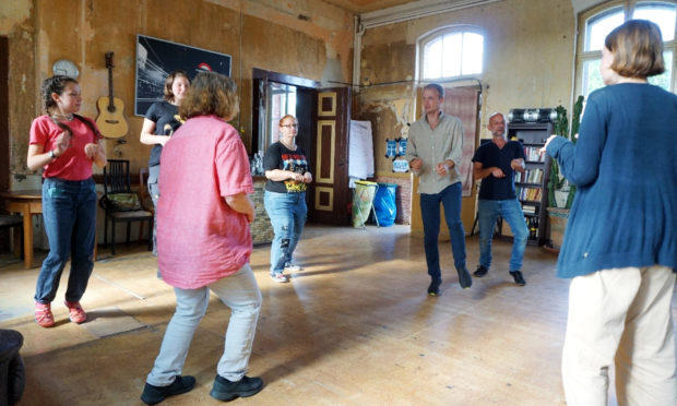 Unter der Leitung von Nicolas Dreher, langjähriger Improvisationstheaterspieler und zuständig für kulturelle Bildung im Naturpark Dübener Heide, arbeiten die Teilnehmer:innen spielerisch am eigenen Ausdruck. Dabei wird auf Übungen und Spiele aus dem klassischen Theater, dem Improvisationstheater, der Clownerie und der Tanzimprovisation zurückgegriffen. Die Teilnehmer:innen lernen, was es bedeutet, Angebote von Spielpartner:innen anzunehmen und positiv weiterzuentwickeln, spontan kreativ zu sein und – nicht zuletzt – auch mal lustvoll zu scheitern. Gute Laune und eine entspannte Atmosphäre sind garantiert!