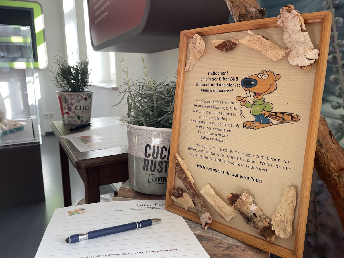 Ein handgefertigter Briefkasten und kreativ gestaltete Briefbögen in unserer Dauerausstellung im NaturparkHaus Bad Düben laden Kinder dazu ein, ihre Gedanken und Erlebnisse mit uns zu teilen.