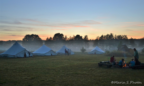 Übernachtet wird in gemütlichen Bauwägen, großen Gruppenzelten und einem kleinen Hexenhaus rund um eine Feuerstelle. Hier wird nach der Rückkehr von den Abenteuern auf dem Bauernhof, den Tagesausflügen in den Wald, an einem der Seen oder der Steinbrüche der Umgebung gemeinsam am Lagerfeuer gesessen, gelacht, vom Erlebten erzählt oder einfach der Sternenhimmel bestaunt.