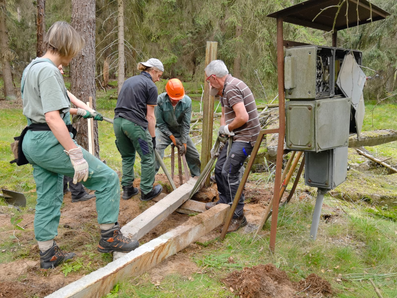 Die Freiwilligen des Bergwaldprojekts bauten in Handarbeit die Überreste der Sicherungsanlagen, die weit verstreut im Areal der ehemaligen militärischen Liegenschaft zu finden sind, ab. Zaunreste, Stahl-Betonteile und Drähte stellen oftmals Fallen für Wildtiere und eine Gefahr für den Menschen dar. Im Rahmen des Bergwaldprojekteinsatzes wurden sie entfernt und beseitigt. Innerhalb der nächsten 15 Jahre sollen die Flächen dann sich selbst überlassen werden und der Wald sich natürlich entwickeln können. Auch die oberirdischen Gebäude wurden größtenteils entfernt, die Bunkeranlagen und Keller werden nun fledermausgerecht umgebaut und gesichert. Die Arbeit der Ehrenamtlichen wurde von Fachleuten des Bergwaldprojekts angeleitet – in Zusammenarbeit mit dem Naturpark Nossentiner/Schwinzer Heide und der Stiftung Reepsholt, in deren Eigentum die ehemalige Militärfläche übertragen wurde.