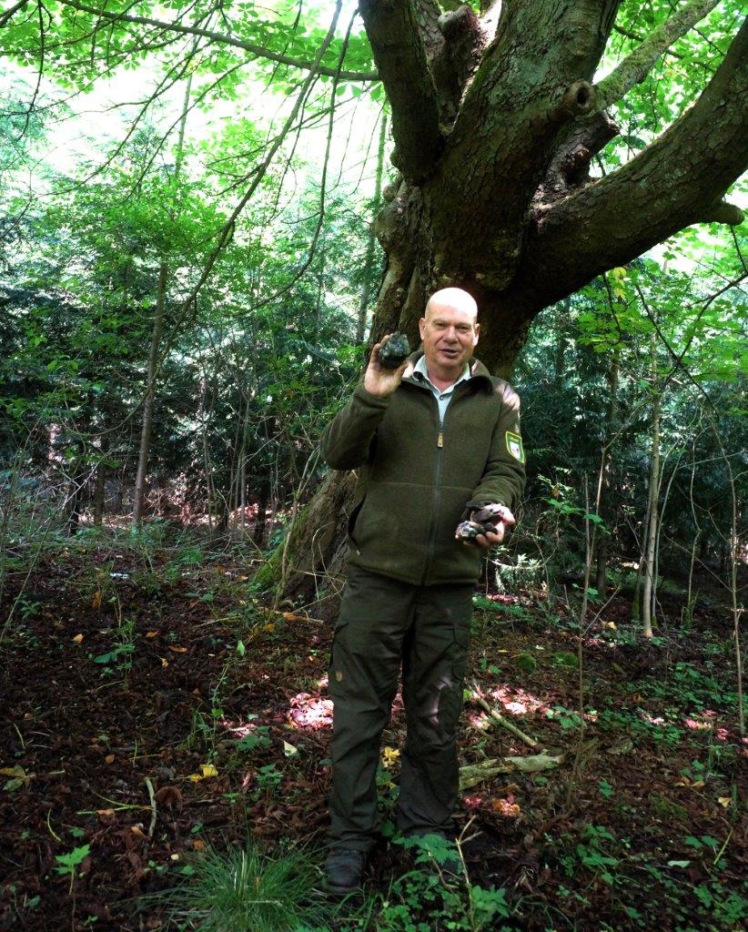 Wer Lust habe, könne sich im Goldberger Heimatmuseum auch einmal eine der größten Sammlungen von Waldglas und der damals produzierten Flaschen und Gläser anschauen, wirbt der Ranger. Ihm selbst habe dort vor allem die enorme Flaschensammlung imponiert. „Eine ganze Wand voll.“ Er sei ja auch ein fleißiger Sammler alter Glasflaschen, aber da könne er nicht mithalten. Am Karower Meiler warten sie dann schon auf ihn. Ein Hilferuf. Henry Fritz soll ein Hornissennest umsetzen. Eigentlich wollte er jetzt die Sternbeobachtungsplätze von Wildwuchs freischneiden. „Aber das wird auch noch“, sagt er.