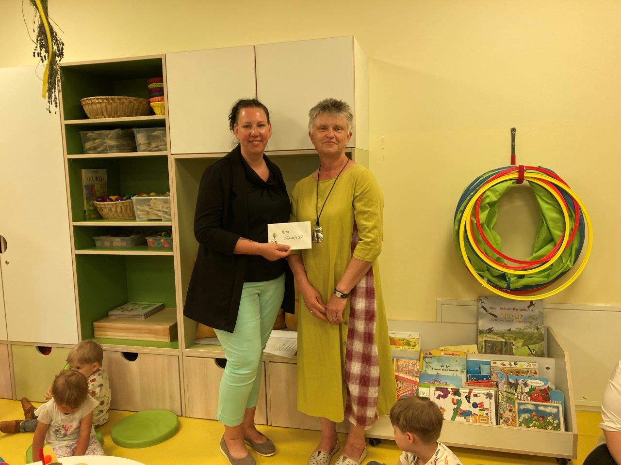 Die Bürgermeisterin, Birgit Kurth, überreichte ein Spende, die den Kindern zugute kommen soll. Einige Gemeindevertreter packten bereits mit an, als es um die Sanierung des Bauhäuschens auf dem Kita-Gelände ging. Diese Outdoor-Station bietet den Kindern künftig einen besonderen Rückzugsort, eine Art Lehrkabinett. So können die Kleinen mit Ferngläsern die umliegenden Pflanzen und Tiere beobachten und spielerisch auf Spurensuche gehen.