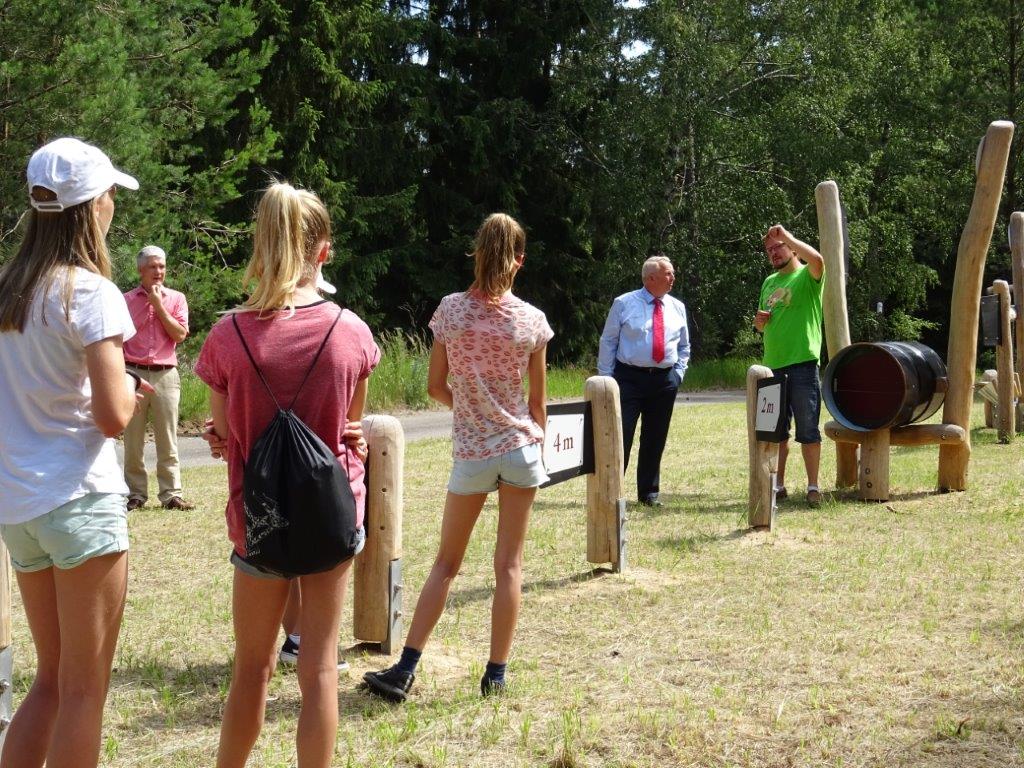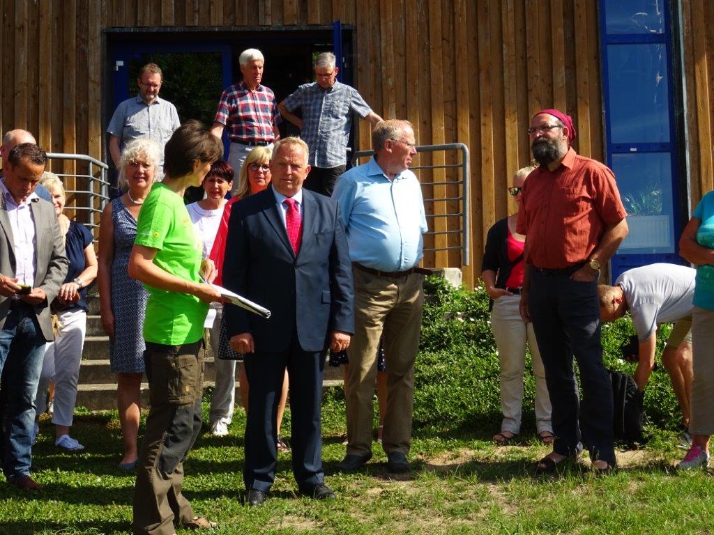 Danach führte Mitarbeiterin Kerstin Breuer den Minister über die Anlage, die im Jahr von bis zu 15 000 Menschen besucht wird. Sie wies auf die neuerdings zum Verkauf stehenden regionalen Produkte hin, erklärte das Konzept der umgestalteten Ausstellung und zeigte das neu gestaltete Außengelände mit Wasserspielstrecke, Teich und Tierfreundewerkstatt.