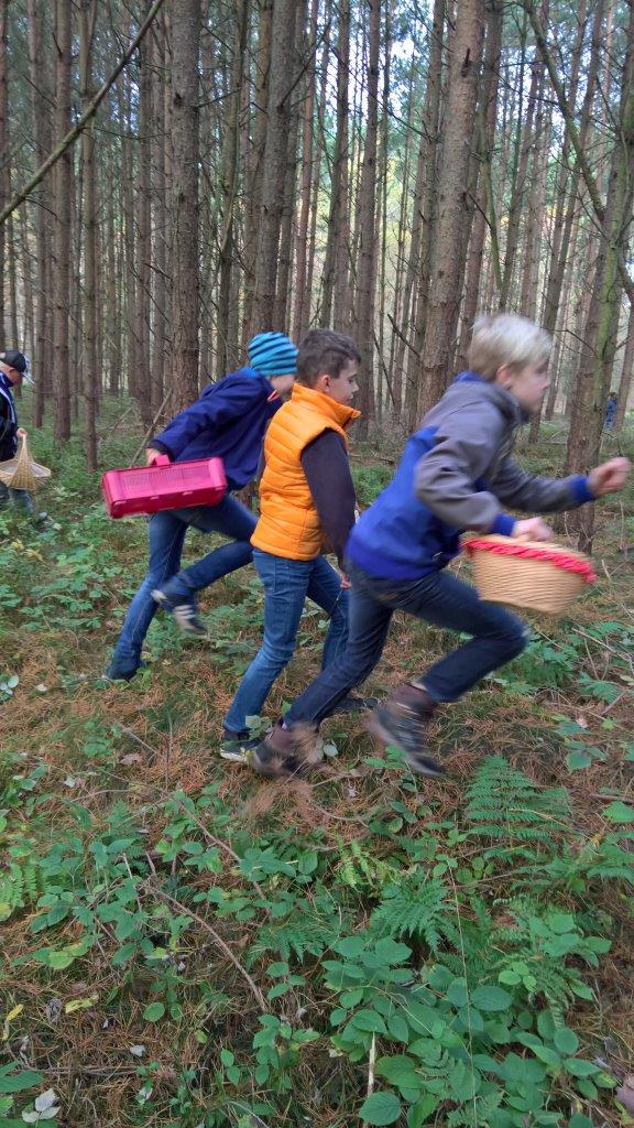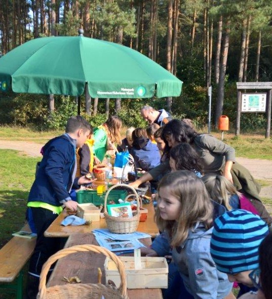 Nach einer kleinen Frühstückspause ging es dann in die ausgedehnten Wälder um die Naturschutzstation in Wooster Teerofen. Bewaffnet mit Körben und kleinen Messern wurde gruppenweise das gelernte Wissen angewendet.
