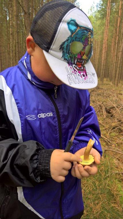 Rund eineinhalb Stunden später fanden sich alle wieder in Wooster Teerofen ein, wo die „Fänge“ ausgewertet wurden. Neben dem Maronen-Röhrling gab es Steinpilze, Birkenpilze, Pfifferlinge und Rotfußröhrlinge. Nicht ein einziger ungenießbarer oder Giftpilz hatte sich in die Körbe der Kinder verirrt! Dann war gemeinschaftliches Putzen angesagt. Zum Abschluss gab es für jedes Kind eine Urkunde als „Kleiner Pilzauskenner“.