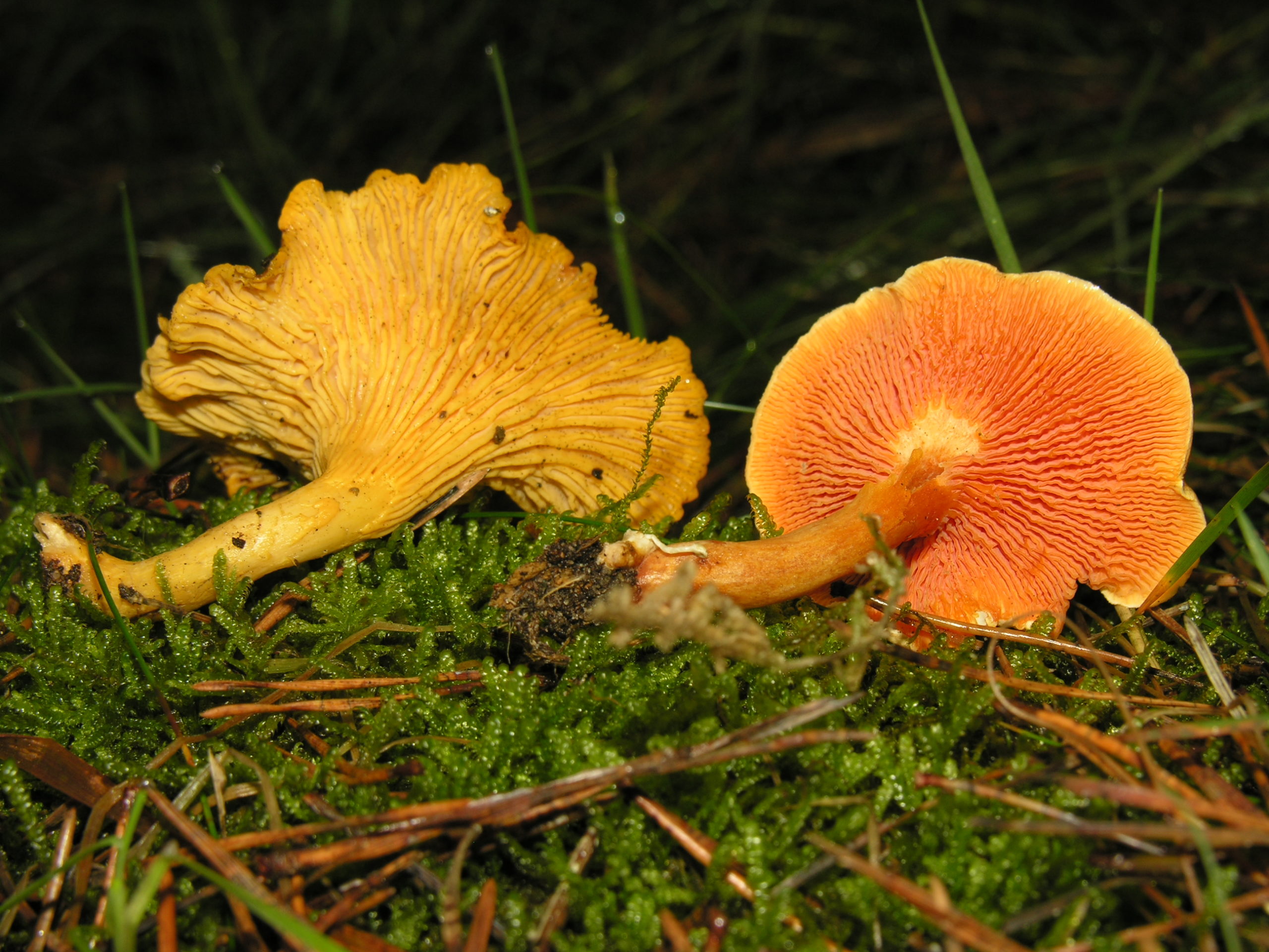 Echter Pfifferling (links) und Falscher Pfifferling (rechts) im Vergleich. Foto: Dr. Wolfgang Mewes