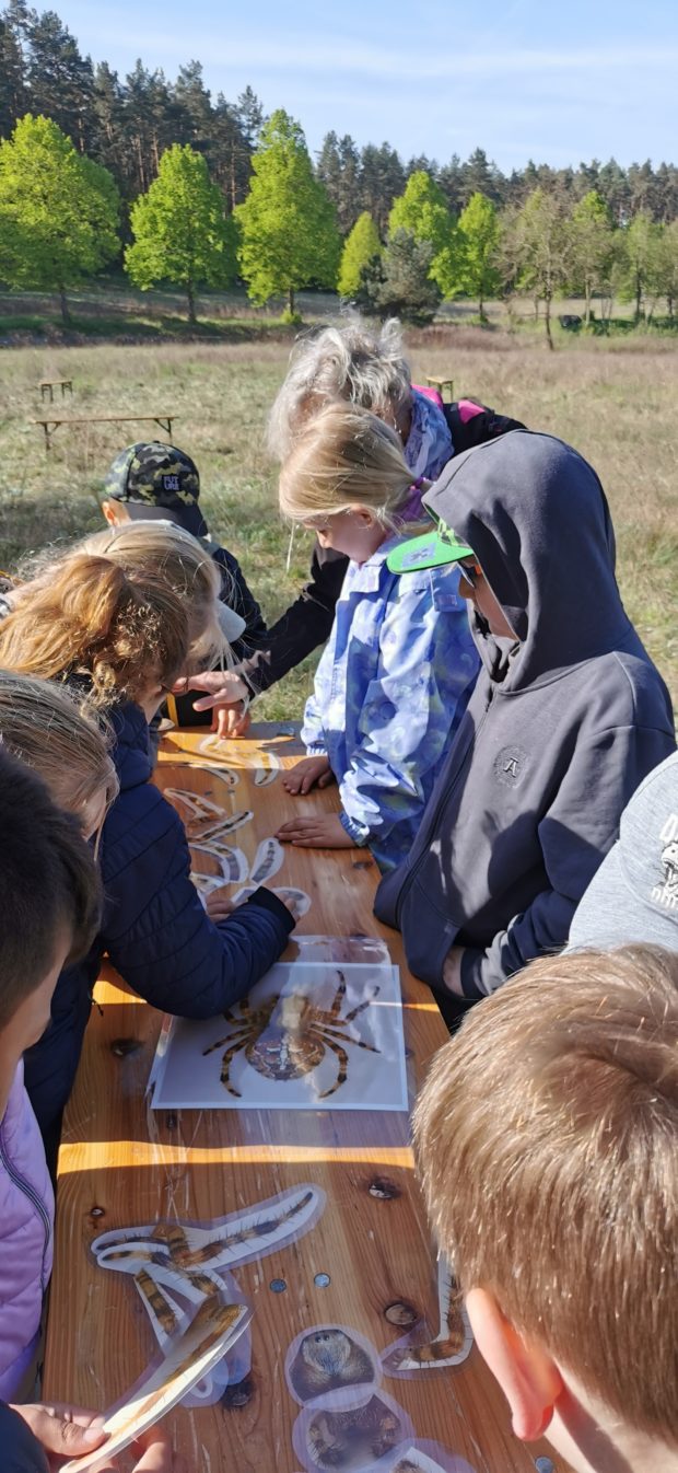 So manch einer hat dann doch Spinnen selbst in die Hand genommen, obwohl das eigentlich nicht geplant war. Auch Spiele durften nicht fehlen. „Der Tag war ein voller Erfolg, es hat großen Spaß gemacht“, sind sich Lehrerinnen und Lehrer sowie Naturparkmitarbeiter einig. In Zukunft hören wir sicher öfter „Oh, eine Spinne“!