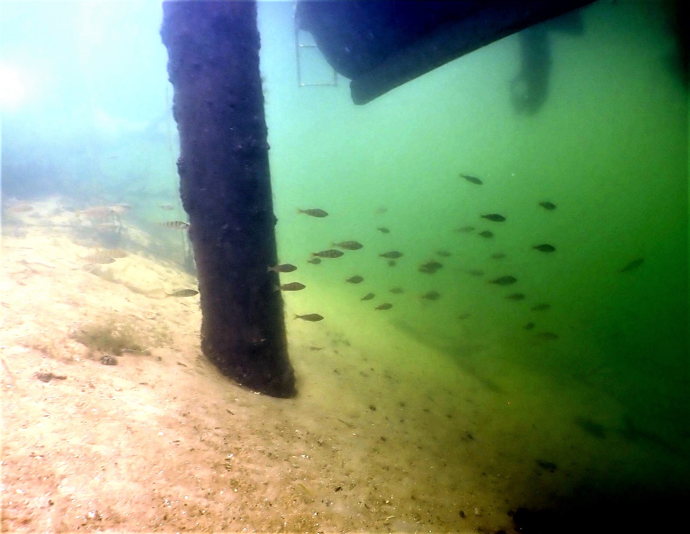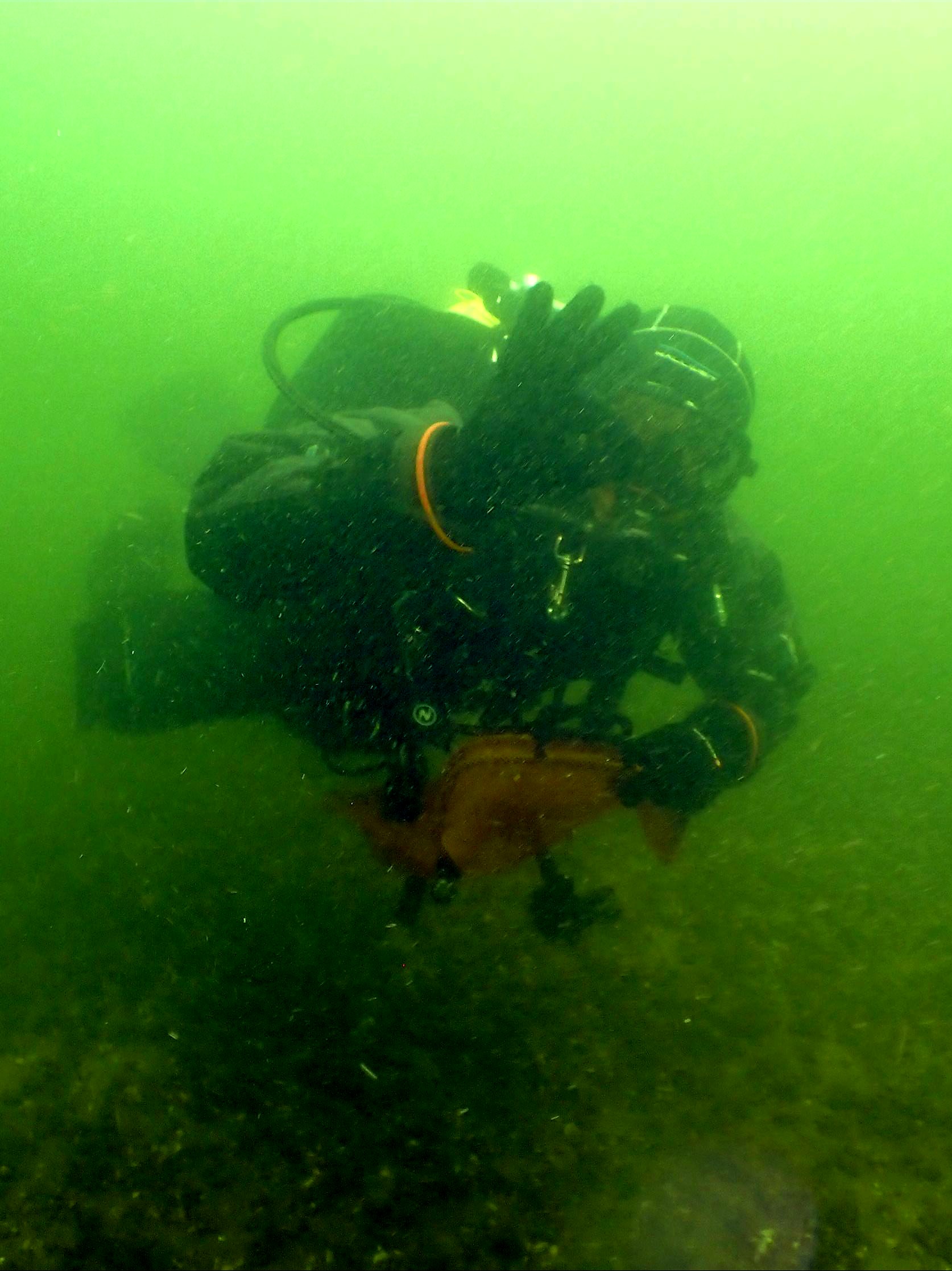Nach einer Theorie-Einheit ging es auch schon zum ersten Tauchgang in den Plauer See bei Alt Schwerin. Begleitet von neugierigen Fluss- (Perca fluviatilis) und Streifenbarschen (Hybrid) wurden unter der Oberfläche Pflanzenproben gesammelt. Nebenbei konnte einiges an Angelzubehör und Plastikmüll aus dem See geborgen werden. Zurück an Land wurden die mitgebrachten Wasserpflanzen bestimmt und von jeder Spezies ein Herbar-Beleg angefertigt.
