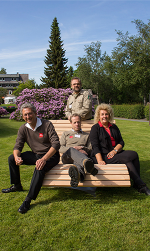Ein wenig stolz können sie auf das Jubiläum schon sein: Thomas Weber (1. Vorsitzende), Harald Knoche (Geschäftsführer), Roswitha Still (2. Vorsitzende) und Fred Josef Hansen (Leiter Ranger Landesbetrieb Wald und Holz NRW) (Foto Naturpark SR/ Kerstin Berens).