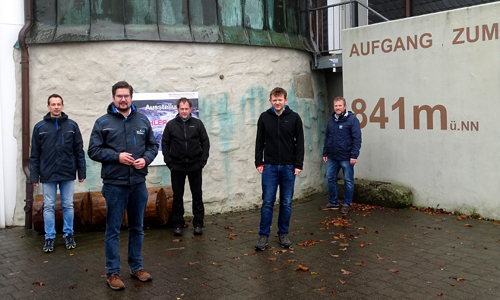 Einweihung am Astenturm: v.l.n.r.: Peter Niesczeri und Sven-Lucas Deimel -Sauerland Camera-, Jürgen Lins -Verkehrsverein Neuastenberg e.V.-, Julian Pape -Wetterportal Sauerland- und Georg Schmitz -Naturpark Sauerland Rothaargebirge e.V. (Foto: Naturpark Sauerland Rothaargebirge e.V.)