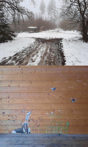 Bei Schnee und Eis startete der rund einstündige Spaziergang über eine Wiese und einen Pfad Richtung Windhausen mit dem Ziel der Rasthütte Vierkreuze. Der Nebel lässt zwar die Aussicht entlang des Wanderweges nur erahnen, dafür verleiht er der Wanderung eine geheimnisvolle Stimmung. Was wird sich wohl auf dem Weg, Schritt für Schritt, enthüllen?