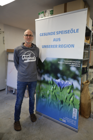 Angefangen hat alles mit einer Schaupresse eines Leinöl-Produzenten bei einem Herbstmarkt bei Weleda. Und dann dachte sich Maik Romakeit: „Das sieht einfach aus, das kann ich auch“. Da er aktiv beim Projekt „Blühende Landschaften“ dabei war und seine Frau Ernährungsberaterin ist, beschäftigte er sich ohnehin bereits länger mit den Themen „Biodiversität“ und „Gesunde Ernährung“.