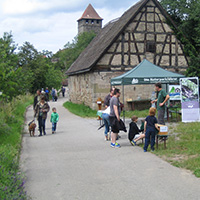 Sehr gut besucht war der Stand des Naturparks auf dem Weg zur Burg Lichtenberg. Viele Wanderer, Radfahrer und Ausflügler waren neugierig auf die Veranstaltungen im Naturpark, wie dem Naturparkmarkt in Oppenweiler, dem Bruch auf dem Bauernhof oder den geführten Wanderungen in Naturpark aktiv.