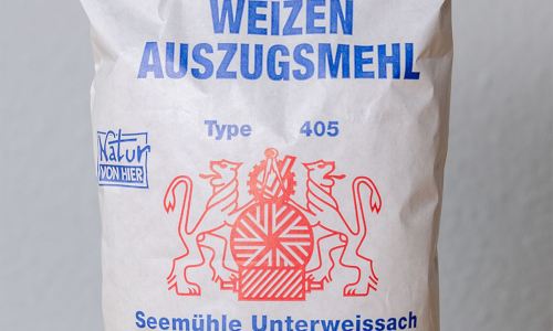 Das Weizen Auszugsmehl Typ 405 ist das “Zugpferd” der Seemühle in Unterweissach, berichtet Müllermeister Manfred Thiel. “Es ist das hellste Mehl und ergibt das lockerste Gebäck. Zum Beispiel Biskuitboden, Hefezopf aber auch Spätzle werden speziell mit diesem Mehl am besten!”, ergänzt er.